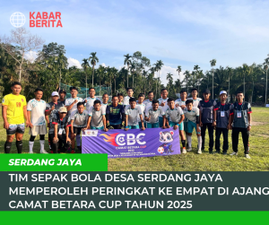 BETARA. Tim sepak bola Desa Serdang Jaya memperoleh hasil diperingkat ke empat setelah kalah dari Desa Makmur Jaya diperebutan peringkat ke tiga, setelah di laga sebelumnya di Kalahkan Desa Sungai Terap di partai Semifinal. Dan kami ucapkan terimakasih kepada seluruh staf pelatih, dan para pemain yang sudah berjuang untuk Desa Serdang jaya.
